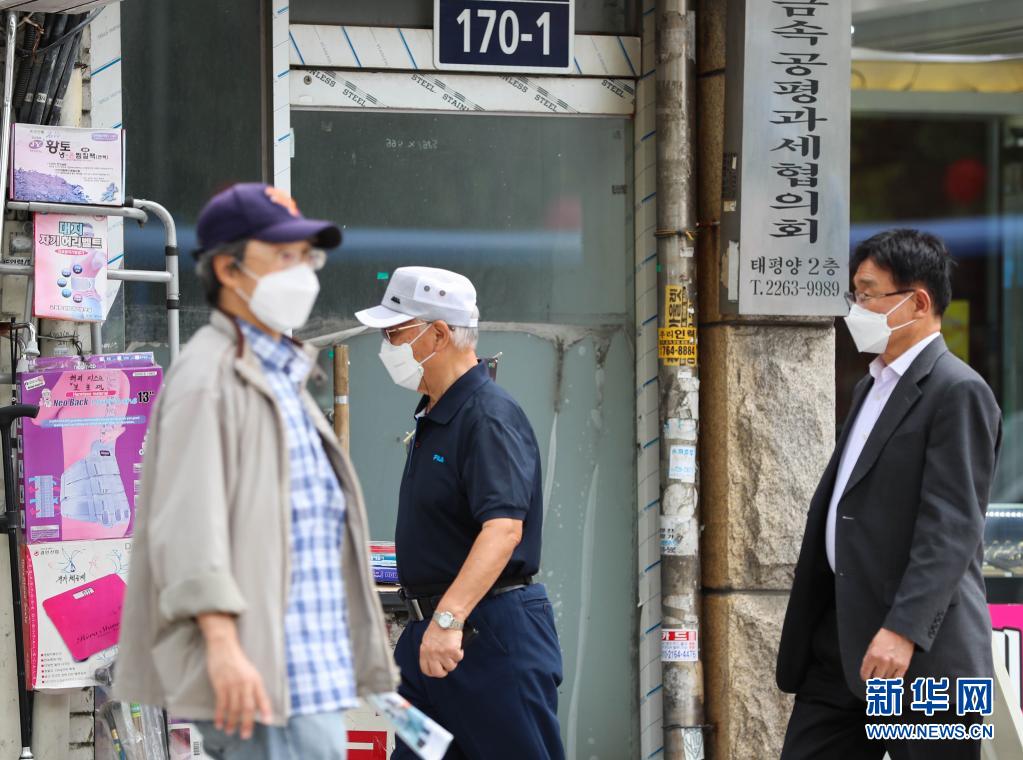 5月26日,戴口罩的市民走在韩国首尔的街道上。新华社记者 王婧嫱 摄