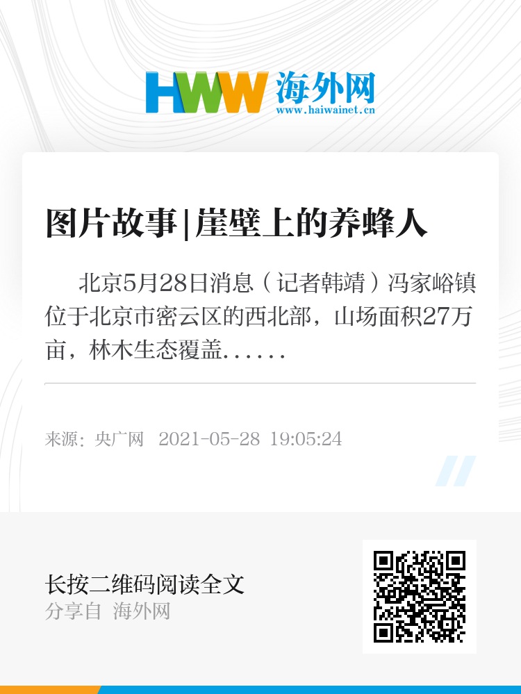 央广网北京5月28日消息(记者韩靖)冯家峪镇位于北京市密云区的西北部,山场面积27万亩,林木生态覆盖率达89.1%。这里山林密布,植被丰富,人们自古有着蜜蜂养殖的传统。