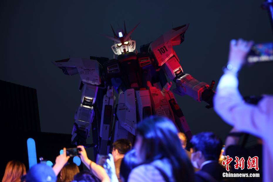 ​5月28日晚,落户上海浦东的日本海外首座高达立像上演了首场灯光机械秀,吸引广大粉丝到场观看。 中新社记者 张亨伟 摄