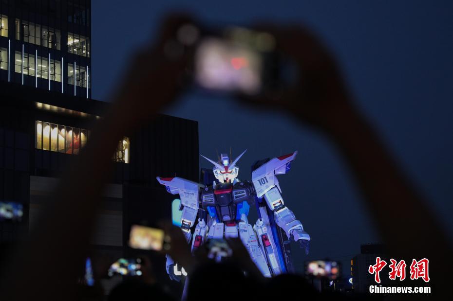 ​5月28日晚,落户上海浦东的日本海外首座高达立像上演了首场灯光机械秀,吸引广大粉丝到场观看。 中新社记者 张亨伟 摄