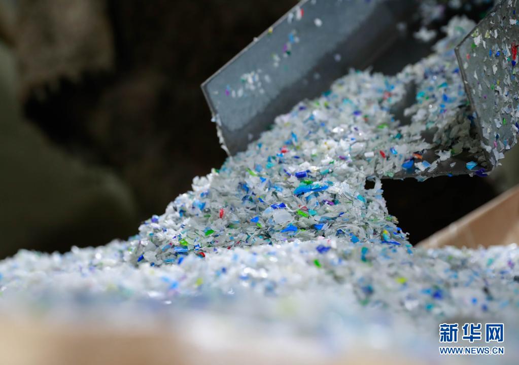 这是在韩国江原道横城郡的一个塑料垃圾处理厂内拍摄的经过初步磨碎的废弃PET塑料碎片(5月27日摄)。新华社记者 王婧嫱 摄