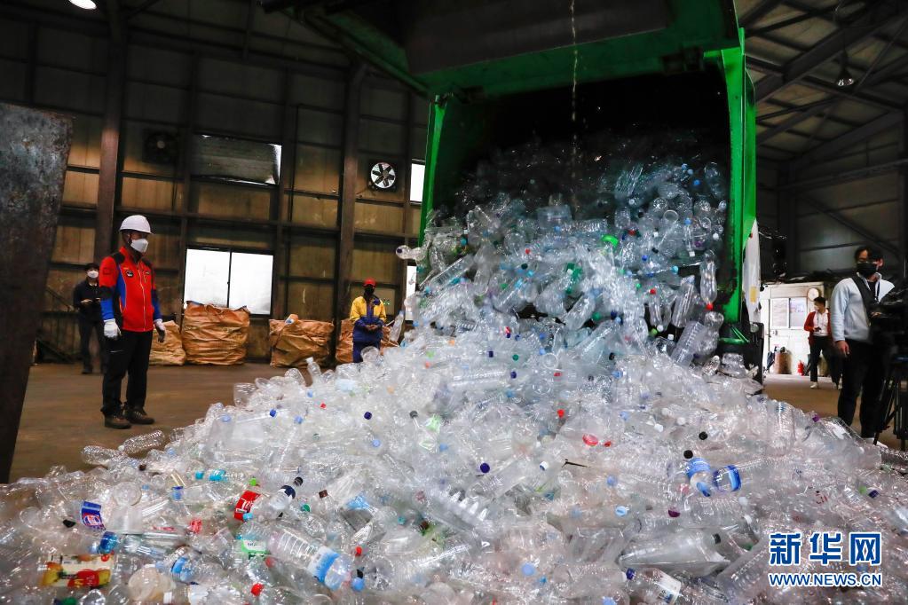 5月27日,在位于韩国江原道横城郡的一个可循环垃圾筛选处理厂,工作人员将大量废弃的PET塑料瓶倾倒在地面上准备进行处理。经过一系列的分拣、清理、磨碎和筛选,废弃的PET塑料瓶变成了洁净的塑料碎末,这些塑料碎末将被运往不同的生产厂家,用来制造纺织品和日常用品等。新华社记者 王婧嫱 摄