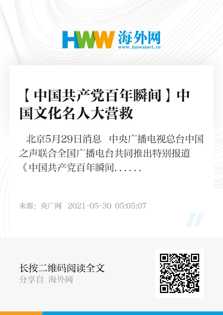 央广网北京5月29日消息 中央广播电视总台中国之声联合全国广播电台共同推出特别报道《中国共产党百年瞬间》。本期推出:中国文化名人大营救。