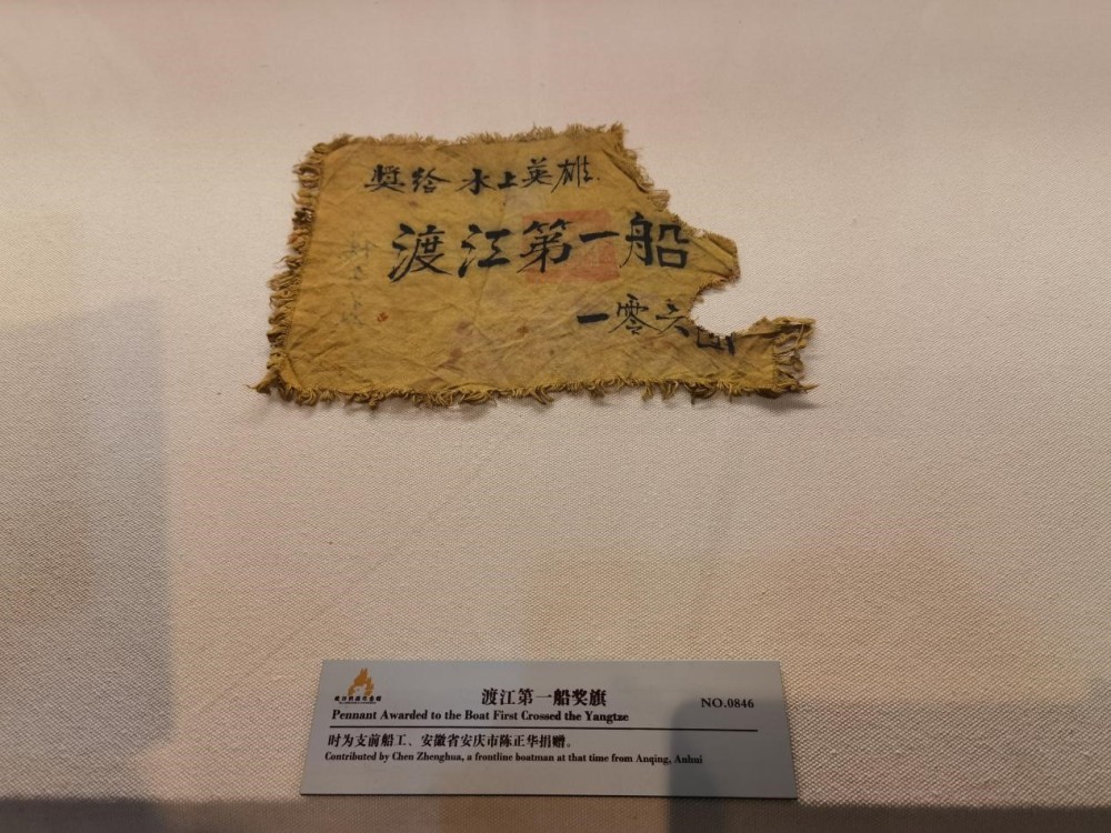 渡江战役纪念馆展示的“渡江第一船”奖状