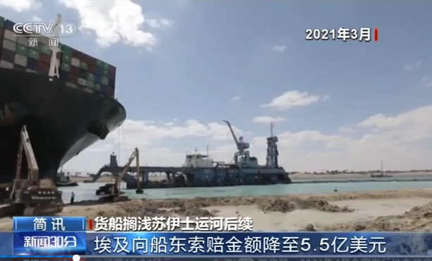“长赐号”货轮3月下旬在苏伊士运河搁浅,严重堵塞运河双向交通,影响全球货运。苏伊士运河管理局最初要求“长赐号”日本船东正荣汽船公司赔偿9.16亿美元。不过,本周早些时候,苏伊士运河管理局表示愿意接受5.5亿美元赔偿,包括为确保该船获释而支付的2亿美元保证金,剩余金额则须通过信用证(Letter of Credit)支付。