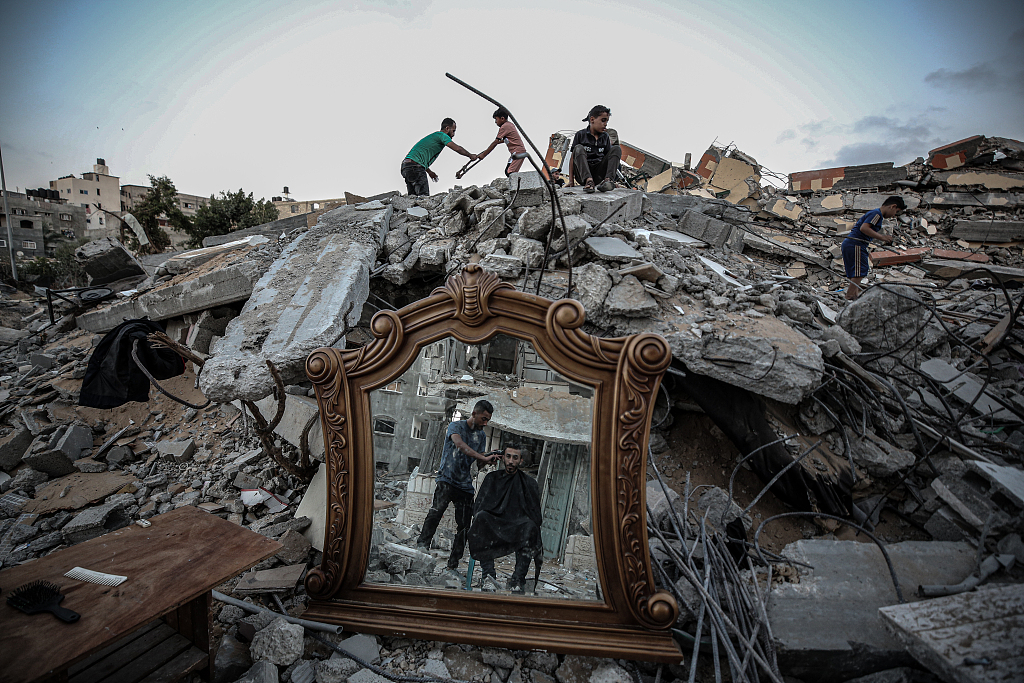 2021年5月30日讯,加沙地区,巴以双方无条件停火已经执行一周的时间,避难的加沙民众陆续返家。以色列空袭期间,加沙城内大量民居被毁、大量民众伤亡,当地满目疮痍,许多建筑沦为废墟。图片来源:人民视觉