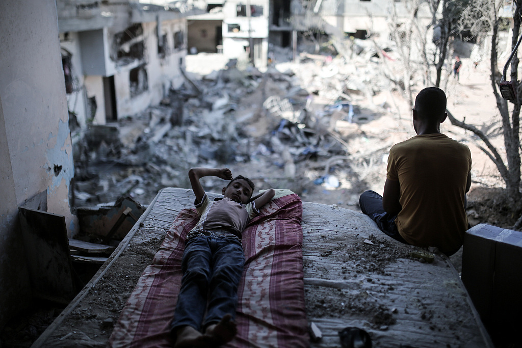2021年5月30日讯,加沙地区,巴以双方无条件停火已经执行一周的时间,避难的加沙民众陆续返家。以色列空袭期间,加沙城内大量民居被毁、大量民众伤亡,当地满目疮痍,许多建筑沦为废墟。图片来源:人民视觉