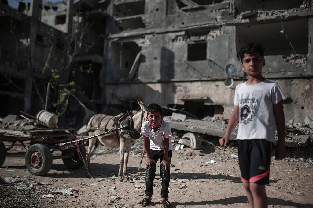 2021年5月30日讯,加沙地区,巴以双方无条件停火已经执行一周的时间,避难的加沙民众陆续返家。以色列空袭期间,加沙城内大量民居被毁、大量民众伤亡,当地满目疮痍,许多建筑沦为废墟。图片来源:人民视觉