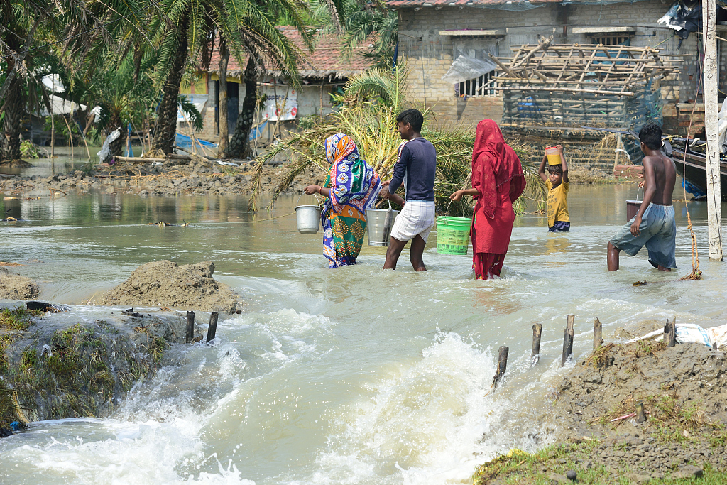 当地时间5月29日,热带气旋“亚斯”袭击印度西孟加拉邦,当地村庄爆发洪水,村民生活受到严重影响。图片来源:人民视觉