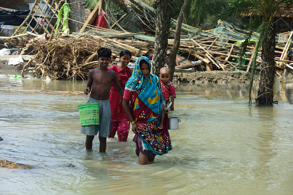 当地时间5月29日,热带气旋“亚斯”袭击印度西孟加拉邦,当地村庄爆发洪水,村民生活受到严重影响。图片来源:人民视觉