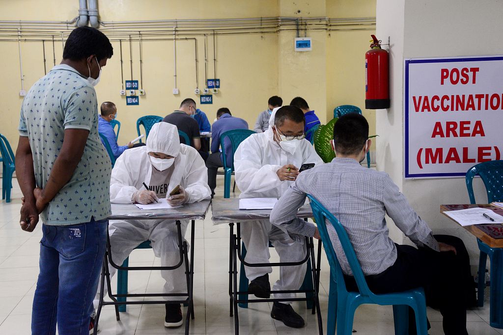 经中国驻孟加拉国大使馆与孟政府部门沟通协调,在孟中资企业协会、华侨华人联合会和志愿者配合下,“春苗行动”29日顺利在达卡4个疫苗接种点展开。图片来源:人民视觉