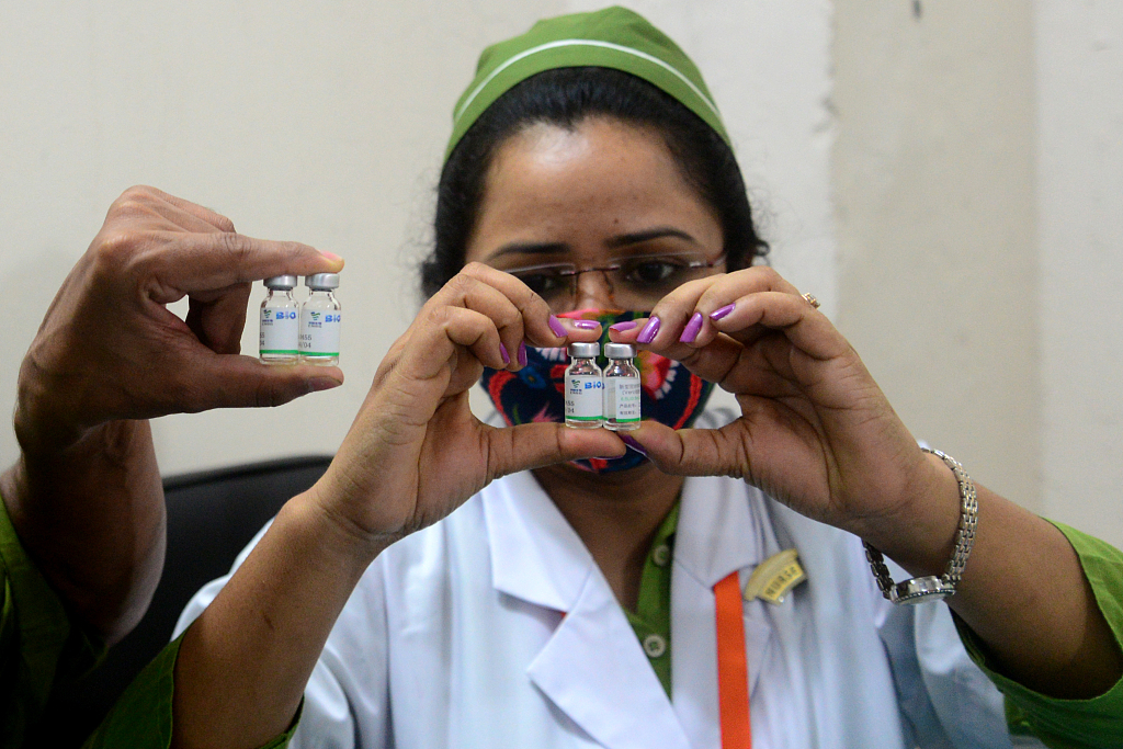 当地时间2021年5月29日,孟加拉国首都达卡,为海外中国公民接种新冠疫苗的“春苗行动”正式启动。当地中国籍公民在达卡医学院接种中国新冠疫苗。图片来源:人民视觉