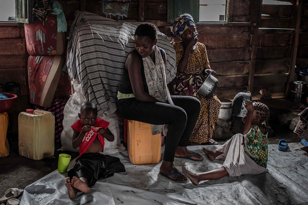 刚果(金)火山喷发 灾民在临时避难所内生活