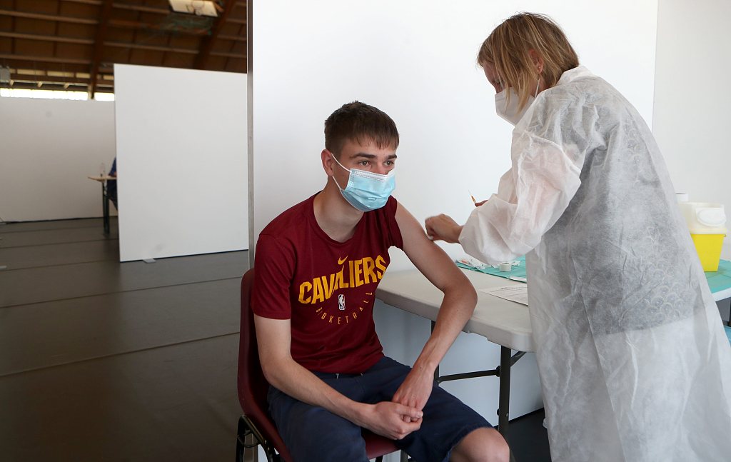 当地时间2021年5月31日,法国穆尔豪斯,民众在当地一个新冠疫苗接种中心接种疫苗。图片来源:人民视觉