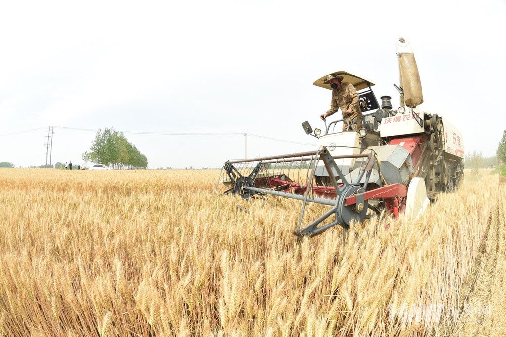 江苏连云港小麦开机收割 亩均增产达两成以上