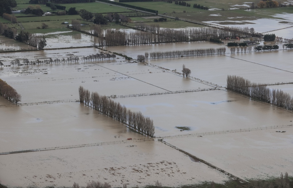 当地时间2021年6月1日,俯瞰新西兰南岛坎特伯雷地区,当地连日暴雨引发洪灾,成一片汪洋。图片来源:澎湃影像