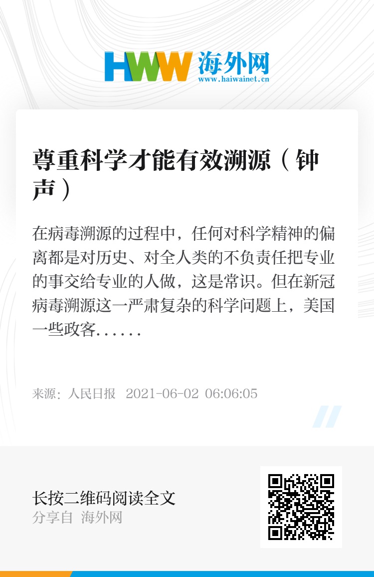 在病毒溯源的过程中,任何对科学精神的偏离都是对历史、对全人类的不负责任