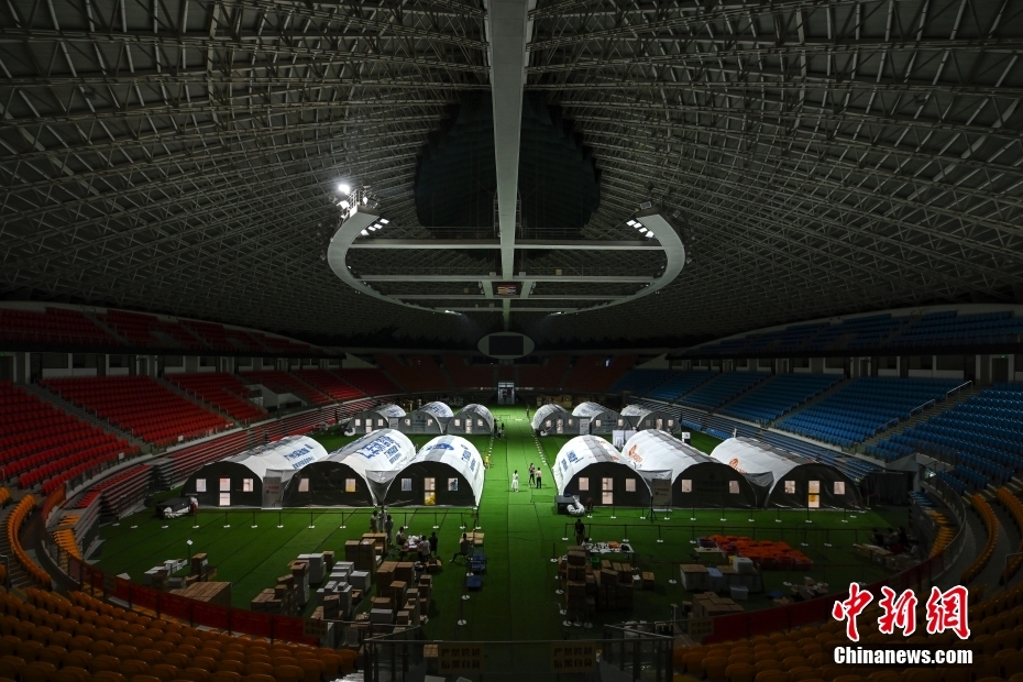 6月3日晚,广东省广州市广州体育馆,由广州实验室联合国家呼吸医学中心、广州呼研院、金域医学等单位联合共建的四组“猎鹰号”气膜实验室全部启用,四组“猎鹰号”气膜实验室日核酸样本检测产能可达12万管。 中新社记者 陈骥旻 摄