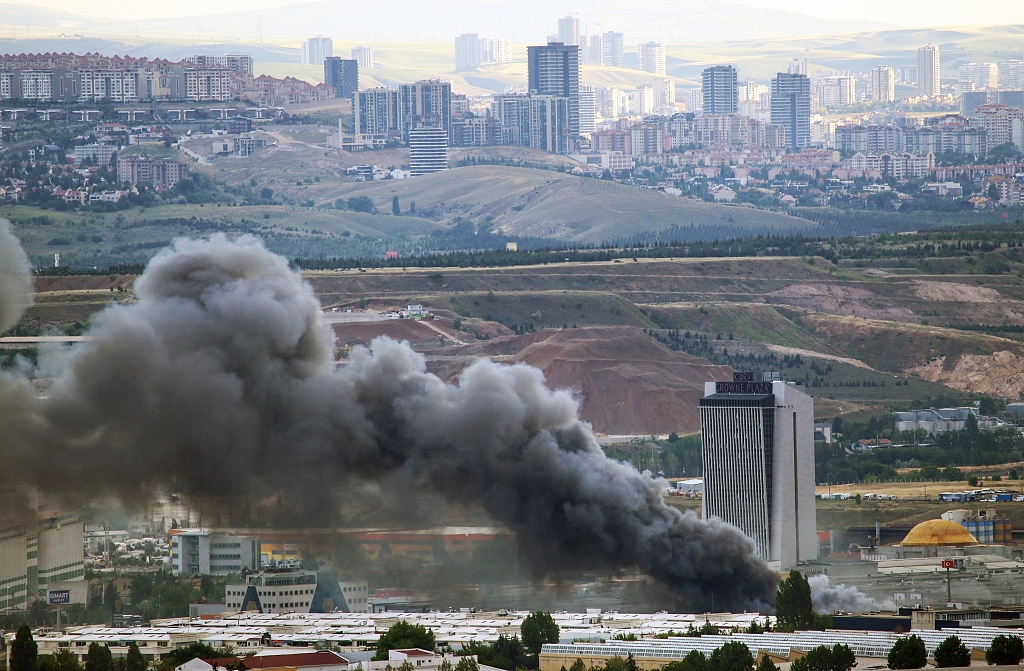 土耳其安卡拉一化学品生产场发生火灾 现场浓烟滚滚