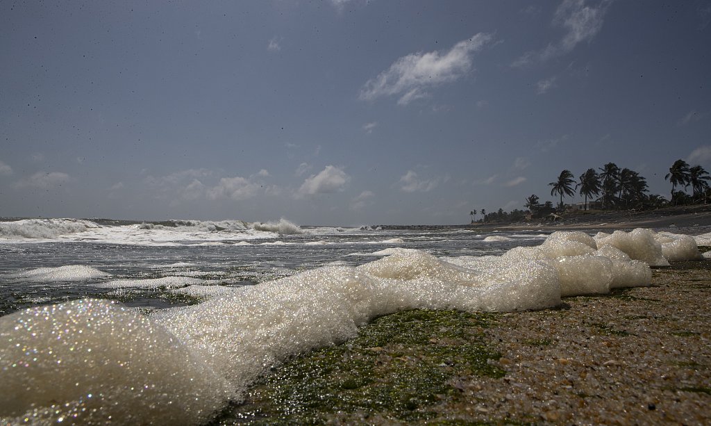 斯里兰卡海域着火货船部分沉没 海滩堆满大量污染物