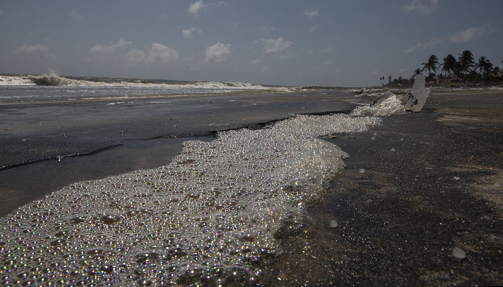 斯里兰卡海域着火货船部分沉没 海滩堆满大量污染物