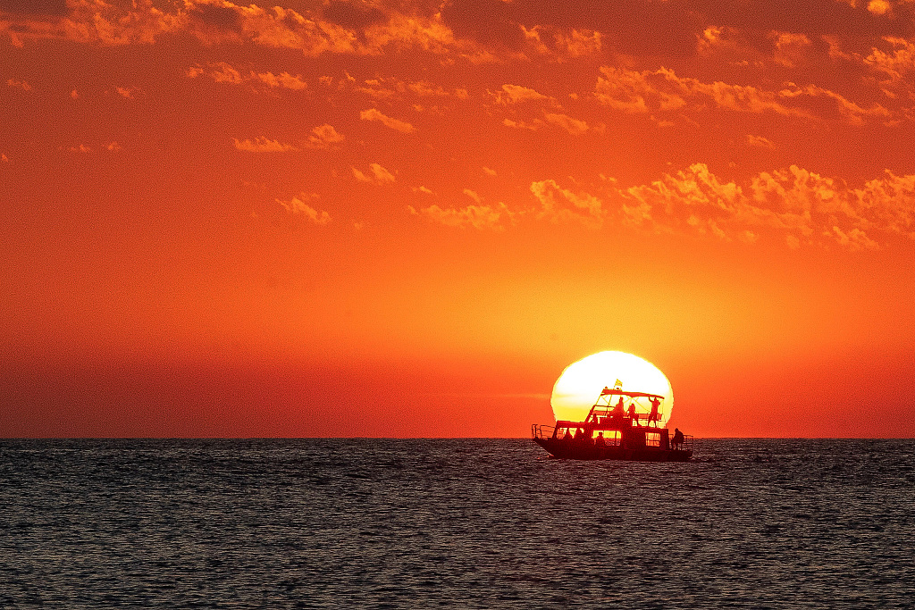 克罗地亚罗维尼,当地呈现惊艳落日美景。罗维尼位于伊斯特拉半岛的西海岸,是一个受欢迎的旅游目的地。图片来源:视觉中国