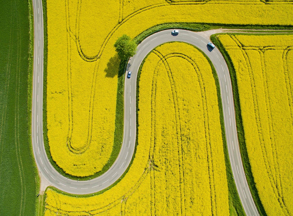 在世界环境日来临之际,我们一起来看看地球上的美景,并一起保护好这个我们赖以生存的蓝色家园,因为美丽干净的地球才是“快乐星球”。图为德国中部Nienstedt附近的国道上,汽车驶过黄灿灿的油菜花田。图片来源:视觉中国