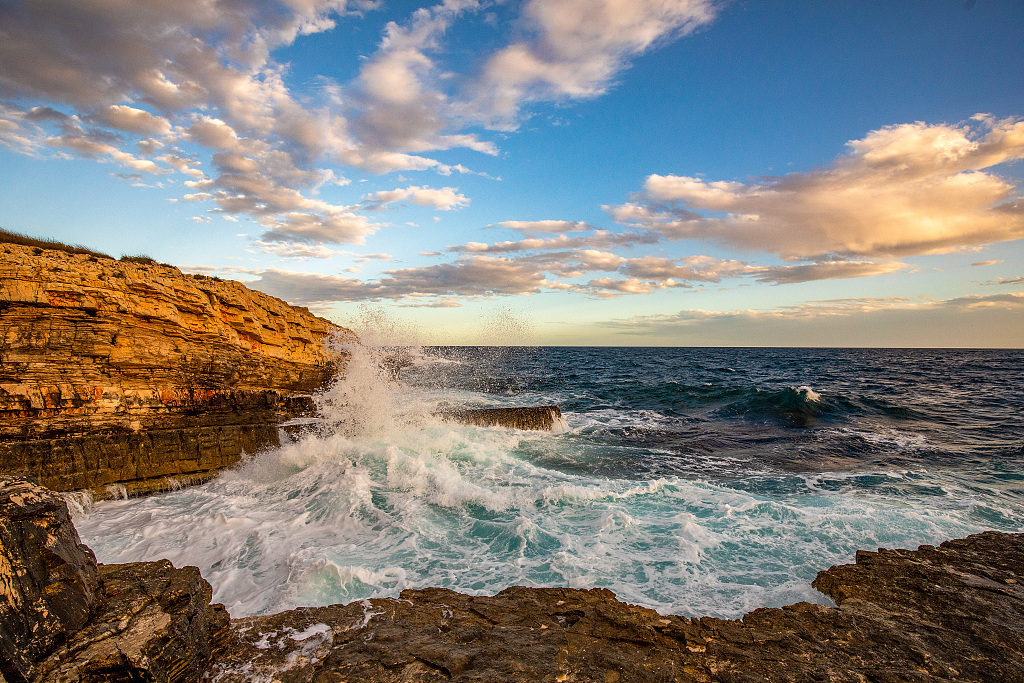 克罗地亚伊斯特里亚Cape Kamenjak,强劲南风引发海上巨浪翻滚。图片来源:视觉中国