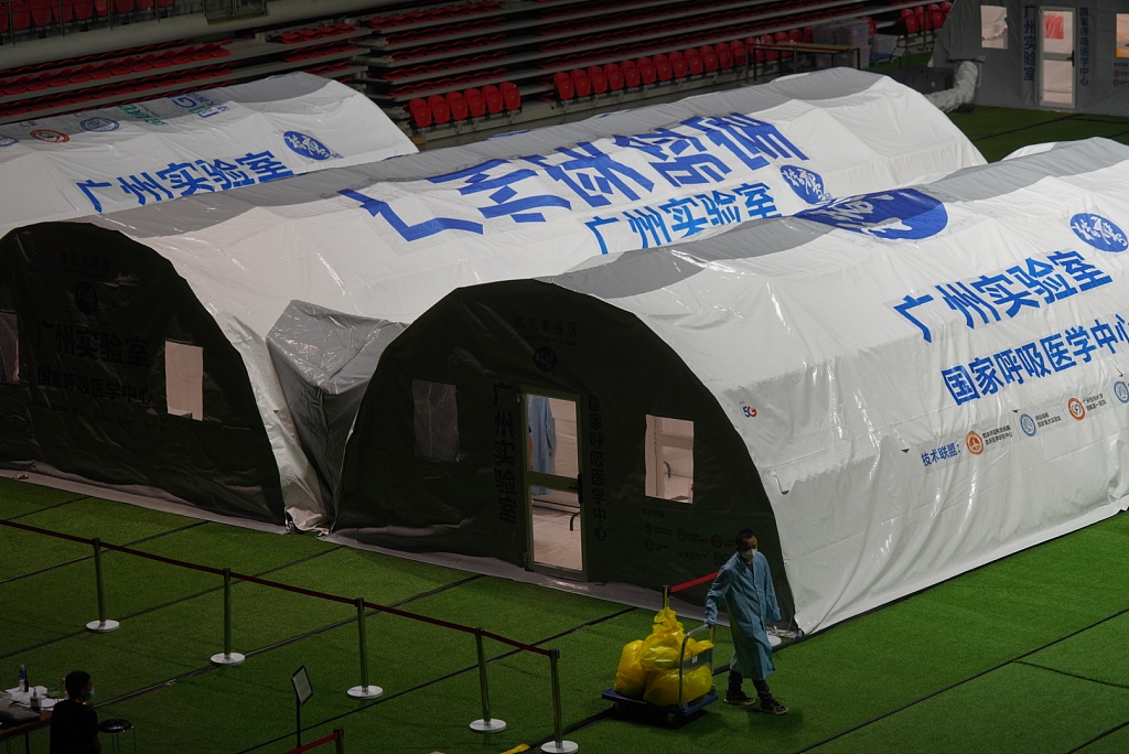 广州核酸检测“方舱”全力冲刺 日测核酸12万管