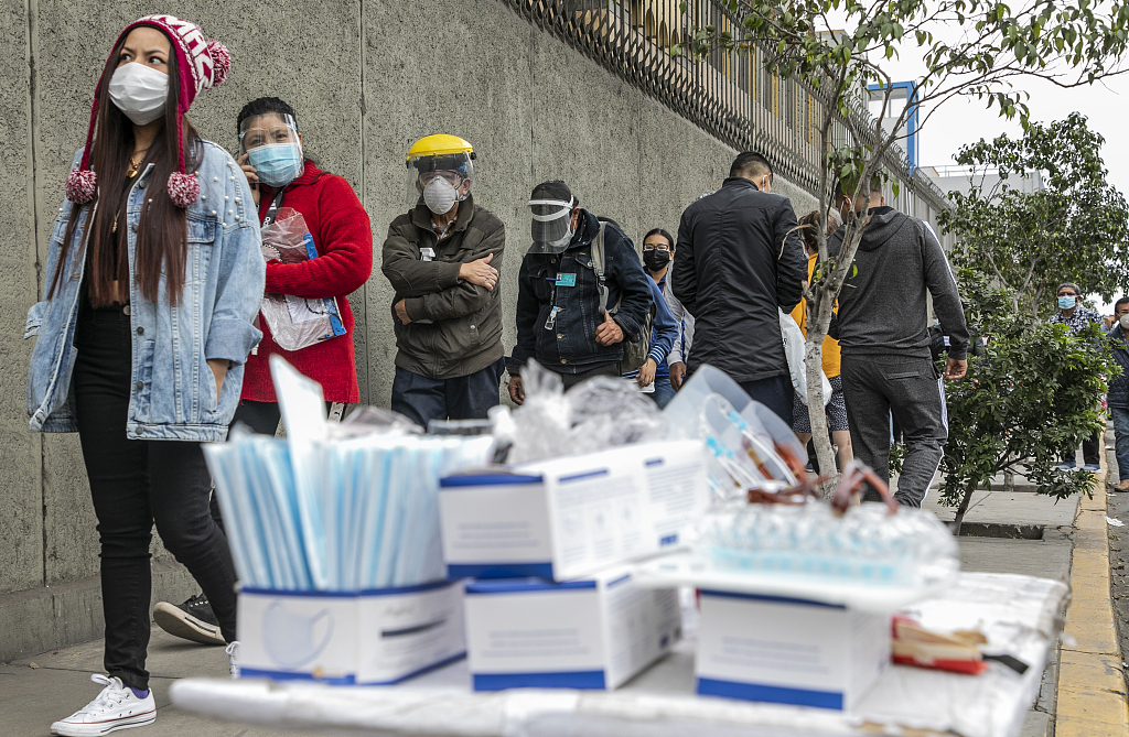 当地时间2021年6月6日,秘鲁举行总统选举第二轮投票,首轮选举得票领先的自由秘鲁党候选人佩德罗·卡斯蒂略与人民力量党候选人、前总统藤森之女藤森庆子展开最后角逐。投票于当地时间上午7时开始至晚7时结束。受新冠疫情影响,选民们佩戴口罩进入投票站,并保持规定的安全距离。工作人员则对选民进行体温测量并喷洒消毒液。本次总统选举选民总数超过2500万。图源:人民视觉
