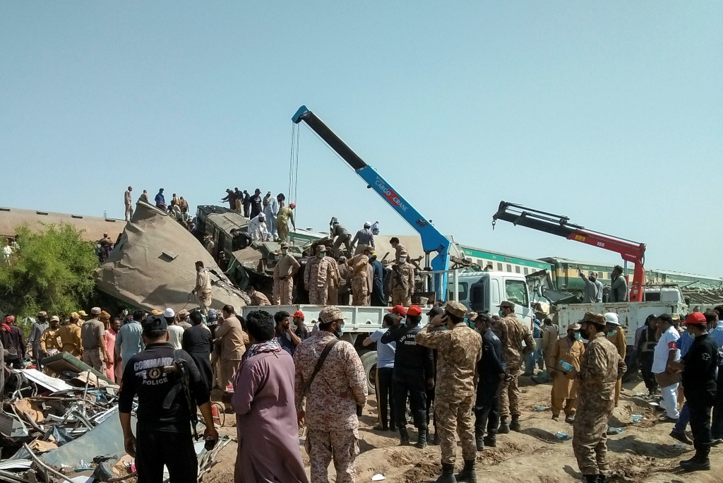 巴基斯坦南部信德省当地时间2021年6月7日发生两列客运列车相撞事故,造成至少36人死亡、超过70人受伤。图片来源:澎湃影像