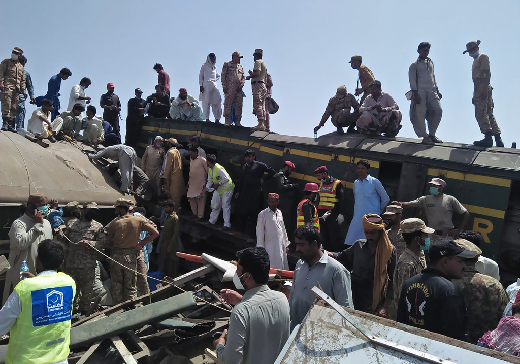 巴基斯坦南部信德省当地时间2021年6月7日发生两列客运列车相撞事故,造成至少36人死亡、超过70人受伤。图片来源:澎湃影像