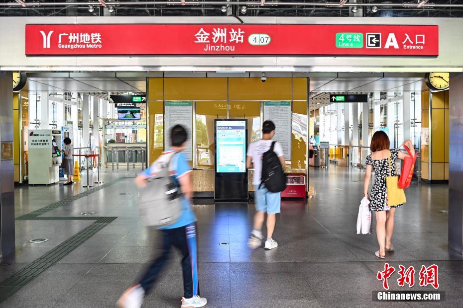 6月7日,广东省广州市南沙区,市民进入地铁四号线金洲站。 中新社记者 陈骥旻 摄