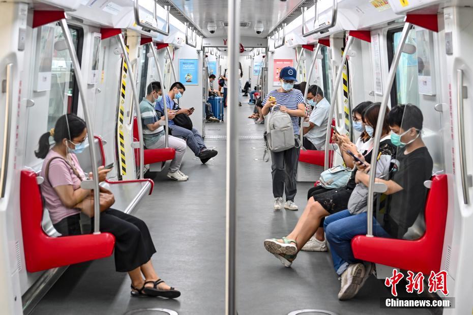 6月7日,广东省广州市南沙区,市民乘坐地铁四号线出行。 中新社记者 陈骥旻 摄