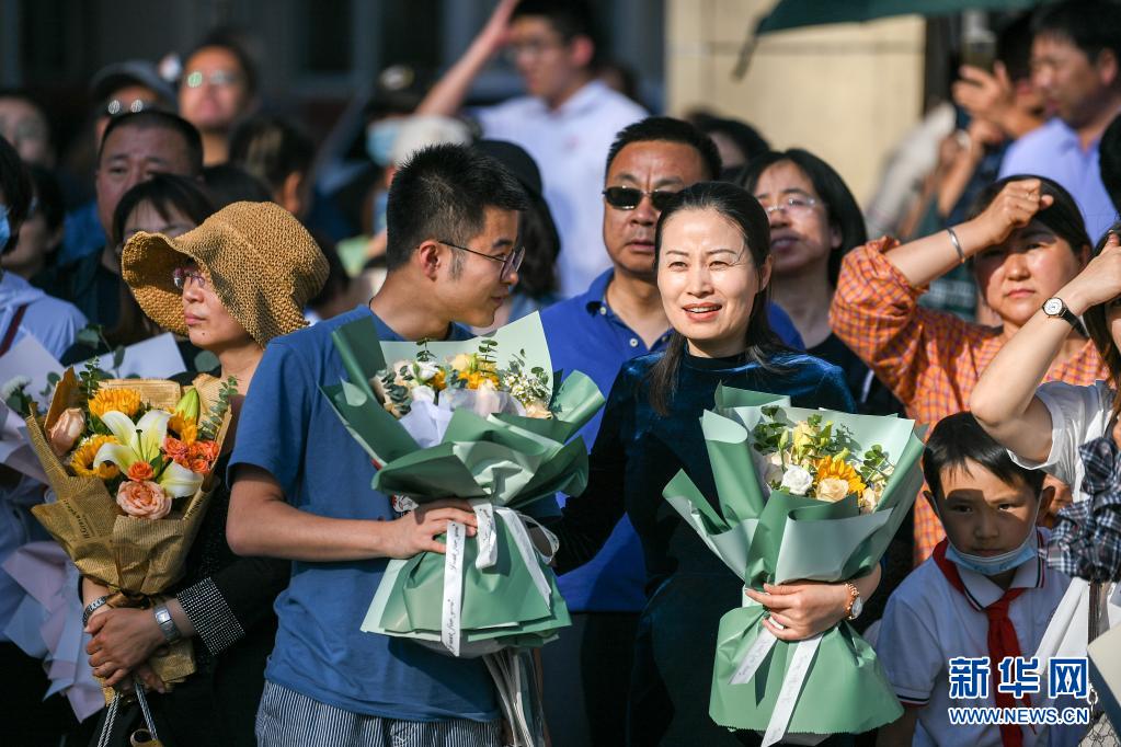 6月8日,考生家长在内蒙古呼和浩特市第二中学(西校区)考点外等候。当日,全国部分地区2021年高考结束。新华社记者 贝赫 摄