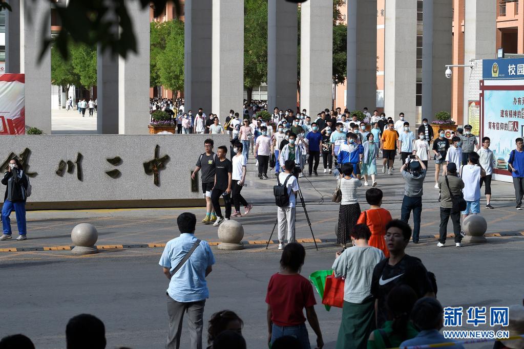6月8日,考生走出宁夏银川市第二中学考点。当日,全国部分地区2021年高考结束。新华社记者 唐如峰 摄