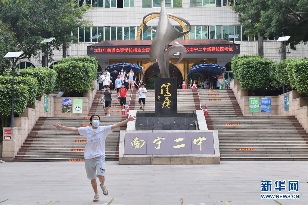 6月8日,在广西南宁市第二中学新民校区考点,考生结束考试后走出考场。当日,全国部分地区2021年高考结束。新华社记者 刘岭逸 摄