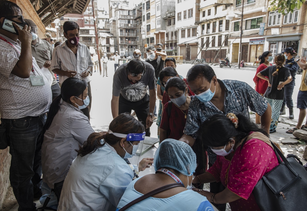 当地时间2021年6月8日,尼泊尔加德满都,民众排队等候接种中国的新冠疫苗。图片来源:澎湃影像