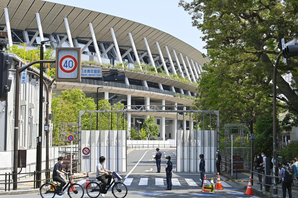 当地时间2021年6月8日,日本东京,为了保障东京奥运会筹备工作的顺利进行,赛事主会场——日本国立竞技场周边开始实施交通管制。东京奥运会将于7月23日揭幕,距今还有45天。图片来源:澎湃影像