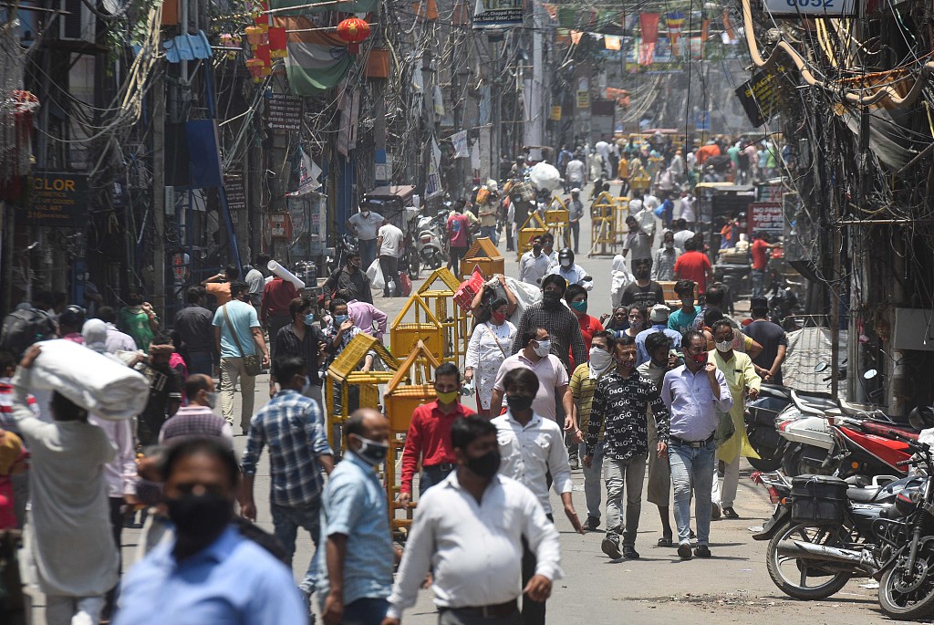 当地时间2021年6月7日,印度新德里,由于近期疫情“有一定程度的缓和”,印度多地自7日起解除部分疫情封锁措施——在首都新德里,地铁可以恢复一半运力,市场和商店可以按单、双日择日营业。图片来源:人民视觉