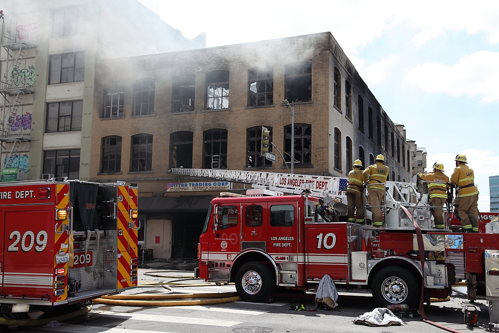 美国洛杉矶市中心发生火灾 火势已被控制