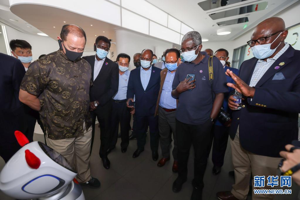 6月6日,驻华使节在张江人工智能岛与人工智能机器人互动。新华社记者 王翔 摄