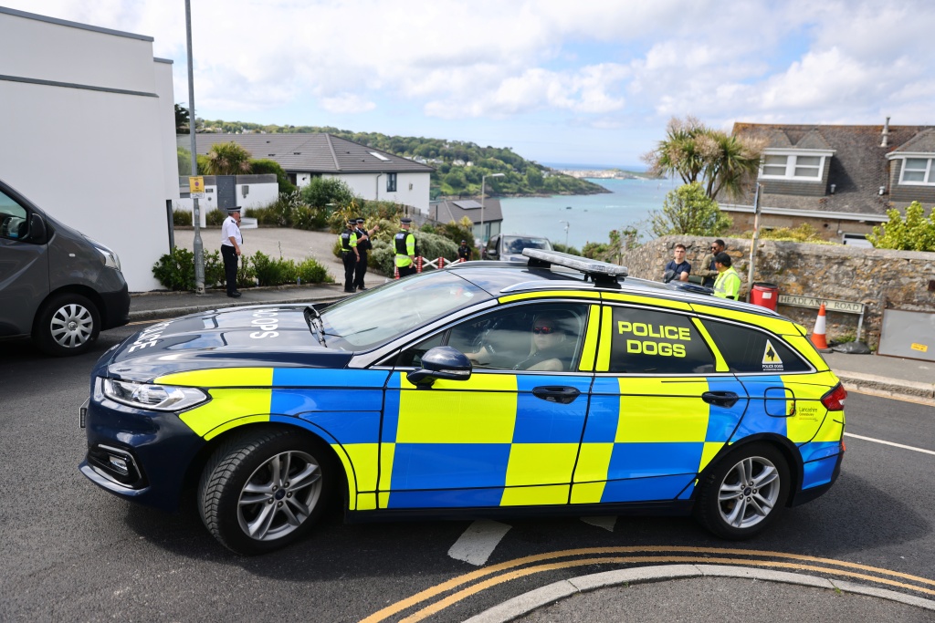 当地时间2021年6月5日,英国康沃尔郡,G7峰会将至,警察与居民交流。图片来源:澎湃影像
