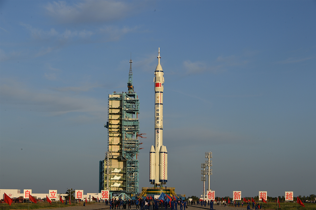 据中国载人航天工程办公室消息,北京时间2021年6月9日,神舟十二号载人飞船与长征二号F遥十二运载火箭组合体已转运至发射区。目前,发射场设施设备状态良好,后续将按计划开展发射前的各项功能检查、联合测试等工作。图源:人民视觉