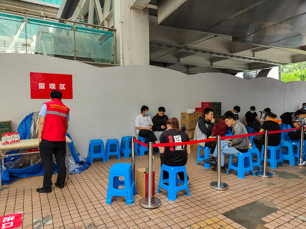2021年6月10日,上海浦东龙阳路地铁站内,工作人员因地制宜,在站外通道内设置了“摆摊式”疫苗接种点,市民可随到随打,无需预约。图片来源:人民视觉