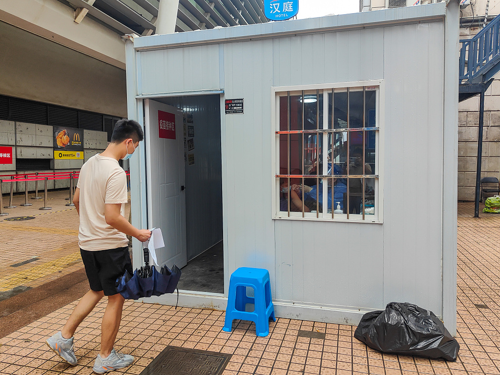 2021年6月10日,上海浦东龙阳路地铁站内,工作人员因地制宜,在站外通道内设置了“摆摊式”疫苗接种点,市民可随到随打,无需预约。图片来源:人民视觉