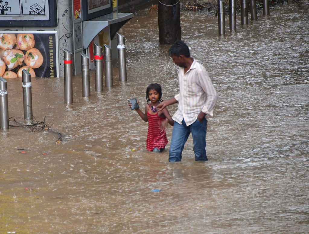 印度孟买遭遇暴雨 街道积水严重