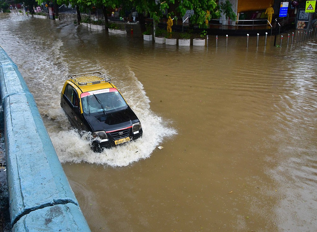 当地时间2021年6月9日,印度孟买遭遇暴雨,街道积水严重。图片来源:人民视觉