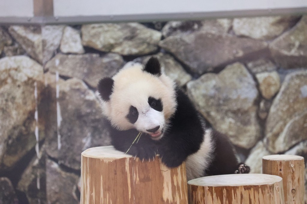 日本大熊猫宝宝"枫滨"亮相 躺平姿势萌萌哒
