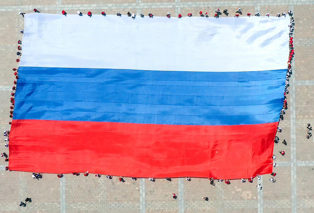 俄罗斯举行独立日庆祝活动 广场现巨幅国旗